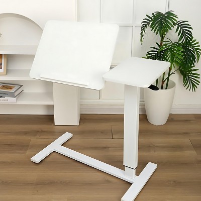 Metal Writing Desk with Drawer, Sled Base, and Wooden Top