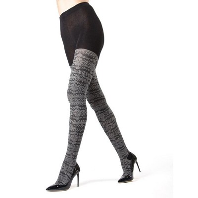 Memoi Houndstooth Patterned Cotton Blend Sweater Tights