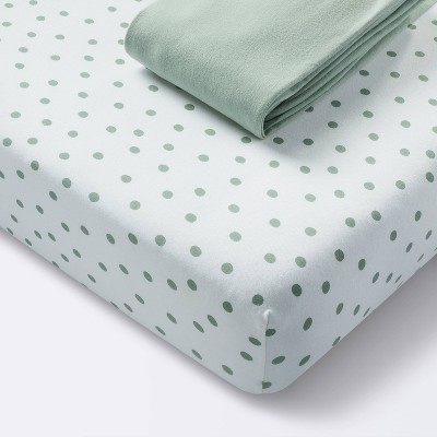 Jersey Fitted Crib Sheet - Dots and Solid Sage - 2pk - Cloud Island™