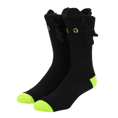 How To Train Your Dragon Toothless Plush Character Heads Adult Black Casual Crew Socks -OSFA