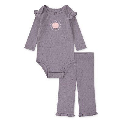 Huggies Baby Girls' 2pc Pointelle Flower Organic Top & Bottom Set - Light Mauve