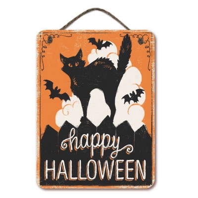 Courtside Market Pumpkins & Black Cat ArtBoard Wall Decor with Black Velvet Ribbon