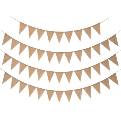 Unique Bargains Birthday Parties Halloween Decoration Cotton and Linen Burlap Triangle Flag Banner Cream 48 Pcs