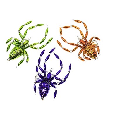 Santa Land 3.5 Inch Halloween Spiders Clip On Halloween Tree Ornament Set , Ornament Set/3 Beaded Czech (1PC)