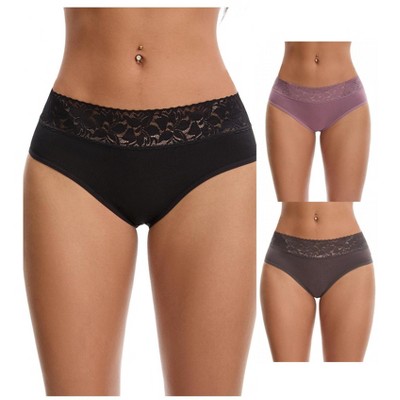 Allegra K Women's Cotton Solid High-Rise Lace Trim Tummy Control Full Coverage Brief