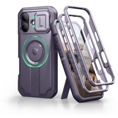 Dexnor for iPhone 16e Case, [2 Front Frame] [Built-in Magnetic Slide Camera Cover & Kickstand]