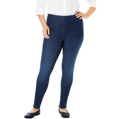 Woman Within Pull-On Elastic-Waist Stretch Fineline Denim Jeans