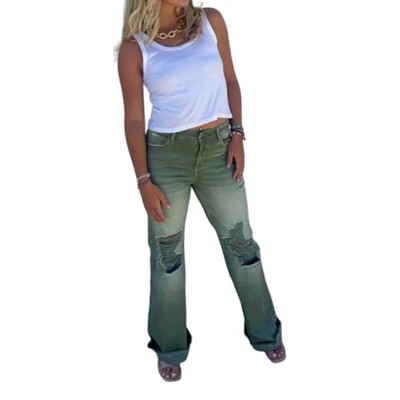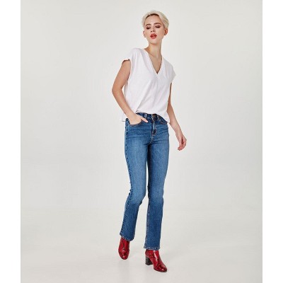 For a touch of retro charm, bootcut jeans elongate the legs and balance proportions, making them a favorite for women who want a timeless fit.