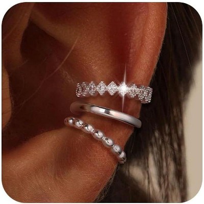 Women's chunky silver clip-on earrings, made of gold-plated stainless steel, no ear piercing required, 1 pair