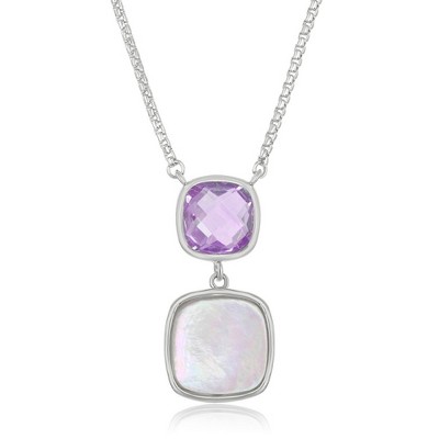 Bella Silver Sterling Silver, Birthstone Rectangle CZ Necklace - 16+2 Inch