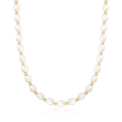 Ross-Simons 8-9mm Cultured Oval Pearl Necklace With 14kt Yellow Gold