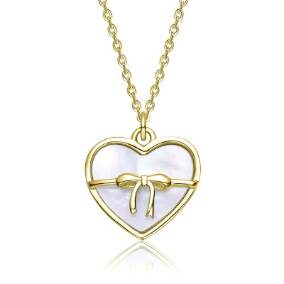 Guili 14K Gold Plated with White Mother Of Pearl Heart with Bow Pendant Neckalce For Kids