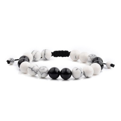 West Coast Jewelry Men's Polished Howlite and Onyx Stone Bead Adjustable Bracelet (10mm)