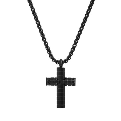 Steeltime 24" Men's black ip stainless steel and simulated black diamond cross pendant