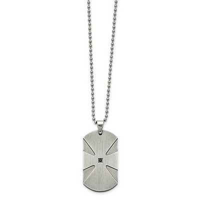 Black Bow Jewelry Stainless Steel & Black Diamond Brushed Dog Tag Necklace, 24 Inch
