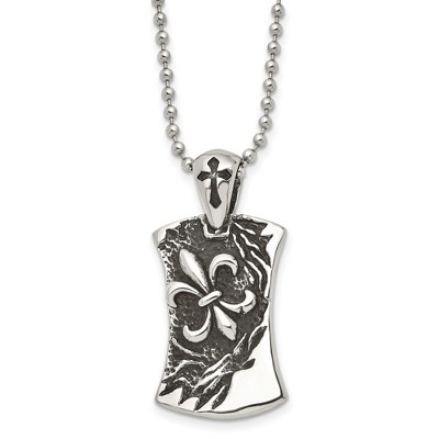 Black Bow Jewelry Men's Stainless Steel Antiqued Fleur de lis Dog Tag Necklace, 22 Inch