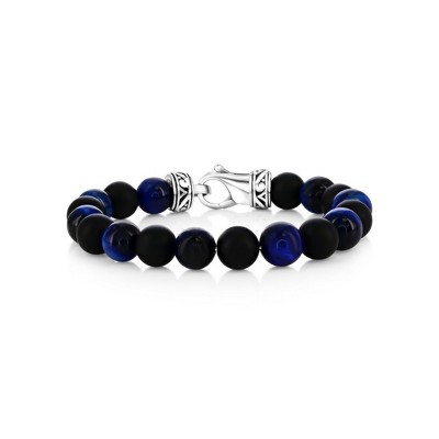 Crucible Men's Blue Tiger Eye Stone and Gold Plated Steel Bead Adjustable Bracelet (8mm)