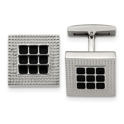 Black Bow Jewelry Stainless Steel & Black Rubber Textured Square Cuff Links, 16mm