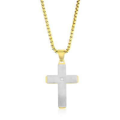 Black Bow Jewelry Stainless Steel and Gold Tone Cross and Snake Chain Necklace - 18 Inch