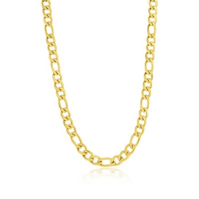 Metallo Mens Stainless Steel 7mm Figaro Chain Necklace - Gold Plated - Gold - 24 Inch