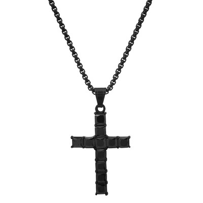Black Bow Jewelry Crucifix Cross Necklace in Stainless Steel, 20 Inch
