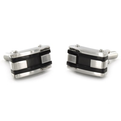 West Coast Jewelry Men's Black Racing Striped Steel Cufflinks