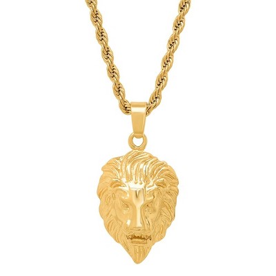 Steeltime 30" 18k gold plated stainless steel lion's head pendant