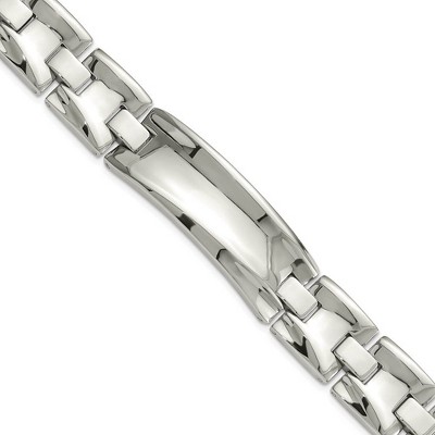 Black Bow Jewelry Men's 15mm Stainless Steel Rippled I.D. Link Bracelet, 8.75 Inch