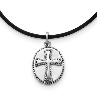 Black Bow Jewelry Boldness, Milgrain Cross Necklace in Sterling Silver