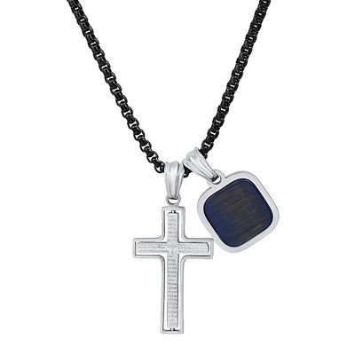 Steeltime 24" Men's two tone black ip and stainless steel cross pendant with simulated diamonds accents