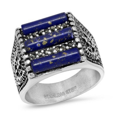 Steeltime Men's stainless steel, tiger eye and simulated diamonds ring