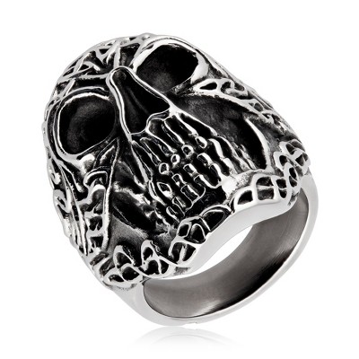 West Coast Jewelry Men's Antiqued Finish Celtic Skull Stainless Steel Ring