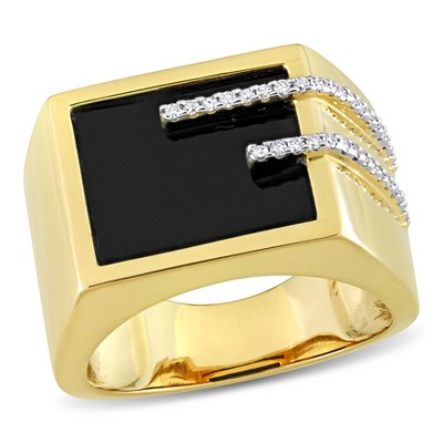 EVERLY JEWELRY | Yellow Plated Sterling Silver 8ct TGW Square Black Onyx and 1/10ct TDW Diamond Men's Ring