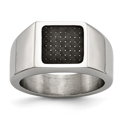 Black Bow Jewelry Men's 11mm Stainless Steel & Black Carbon Fiber Signet Tapered Ring