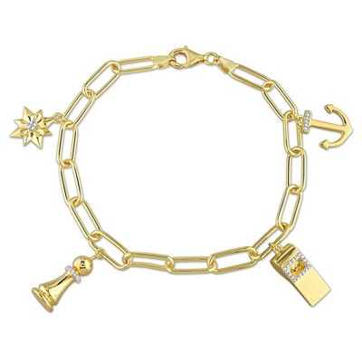 EVERLY JEWELRY |Men's Yellow Plated Sterling Silver 1/6ct TDW Diamond 4-Charm 6 mm Oval Link Chain Bracelet - 9 in