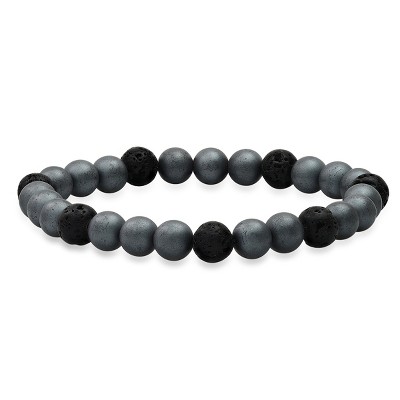 Steeltime Men's black lava beaded bracelet