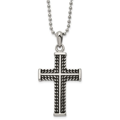 Black Bow Jewelry Men's Stainless Steel Antiqued and Polished Cross Necklace, 22 Inch