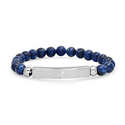 Steeltime Men's blue lapis beads and stainless steel Our Father prayer id bracelet