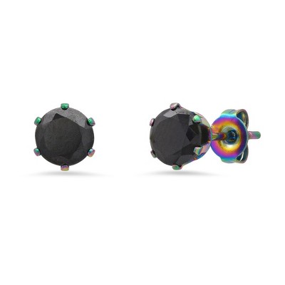Steeltime Men's multi color ip stainless steel and black simulated diamonds stud earrings