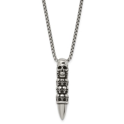Black Bow Jewelry Men's Stainless Steel Skull Totem Bullet Necklace, 25.5 Inch