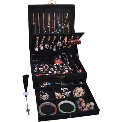 3-Layer Jewelry Box with Clear Lid Drawer and PU Leather Exterior