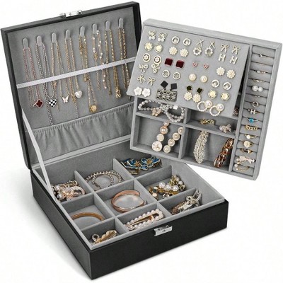2-Layer Velvet Jewelry Organizer Box for Necklaces and Bracelets