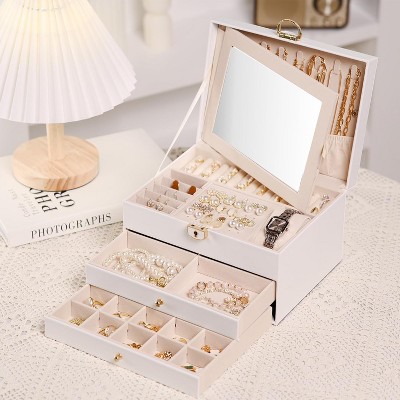 3-Drawer Jewelry Box and Display Organizer for Earrings and Necklaces