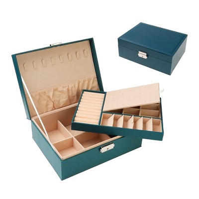Unique Bargains PU Leather 2 Layer Jewelry Box with Mirror