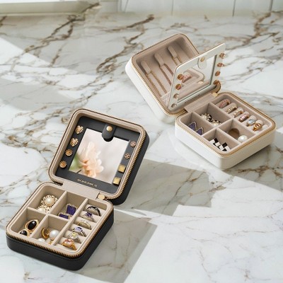Maximize your space with our compact yet efficient jewelry organizers. Whether it’s a wall-mounted jewelry armoire or a rotating stand, our space-saving solutions are tailored to fit seamlessly into your lifestyle. Say goodbye to clutter and hello to a neat, organized space that showcases your jewelry collection.