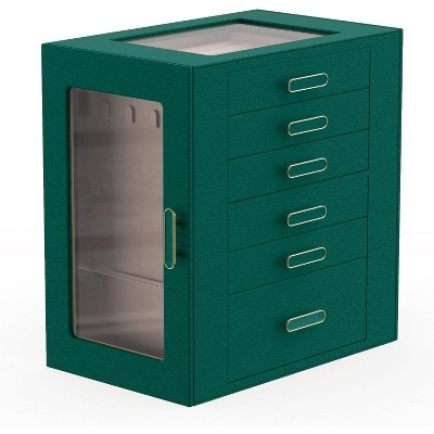 6-Layer Jewelry Organizer with 5 Drawers and 2 Glass Doors