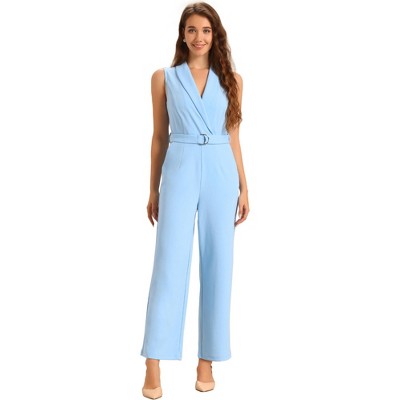 INSPIRE CHIC Women's Casual Sleeveless Shawl Collar Office Belted Cropped Jumpsuit
