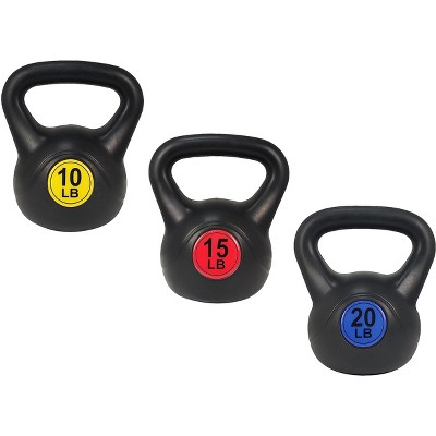 Kettlebells are an ideal alternative to dumbbells. Because a kettlebell’s weight is positioned away from its handle, a kettlebell workout can be more challenging than one where a dumbbell is used. Break up your workout routine with kettlebells in variety of different weights. Shop kettlebell pairs to easily tone each arm or pick up a kettlebell that comes with its own workout DVD, so you can make the most of your training. A kettlebell with a contoured shape provides room for your forearm to move with ease. When used properly, kettlebells improve your workout and overall physical strength, effectively burning calories and toning muscles.