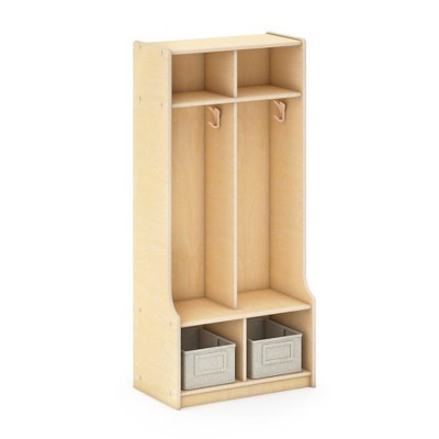 - natural wood cubby storage