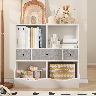- 5-cube wooden kids toy storage organizer with anti-tipping kits-white product info and reviews
